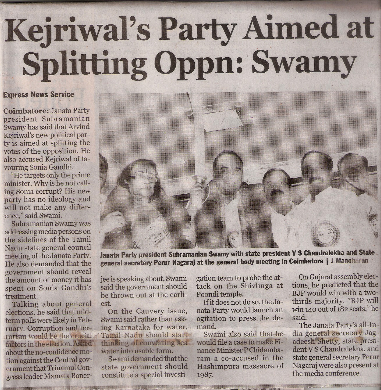 All the important newspapers in southern India prominently carried out news related to the TN State convention of Janata Party. This convention was held oin Coimbatore, as reported earlier on this blog.